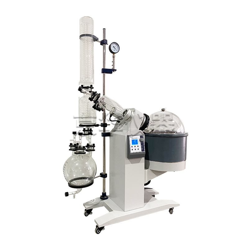 旋转蒸发仪又称水浴型旋转蒸发器,是通过在真空的条件下恒温加热物料,并使蒸发瓶恒速进行旋转,让物料附着在瓶壁上形成薄膜状态进行蒸发,后经冷凝器冷却回收于收集瓶中,可以很大程度提高蒸发的效率,特别适用于对高温易分解变性的物料进行浓缩提纯。旋转蒸发仪主要试用与医药、化工、生物制药等行业领域的浓缩、干燥、结晶、提纯、分离以及溶媒回收。