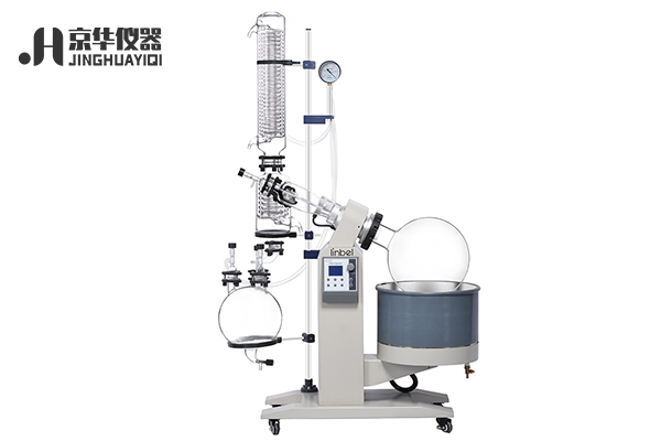 R-20L旋转型蒸发仪是由蒸馏瓶、加热锅、冷凝管等部分组成的实验室常用设备。R-10L旋转蒸发仪器主要用于在减压条件下连续蒸馏大量易挥发性溶剂。尤其对萃取液的浓缩和色谱分离时的接收液的蒸馏,可以分离和纯化反应产物。